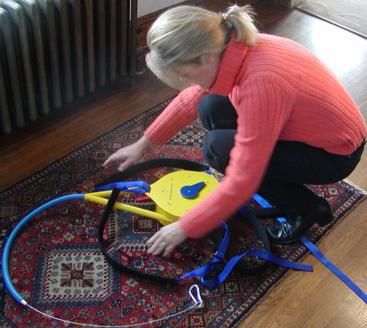 Place the EasyDown unit face down and lay out the four color-coded straps